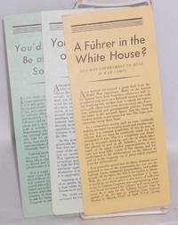 New York: Keep America Out of War Congress et al. 1940. Complete set of three pamphlets issued together identifiable as such by blurb on the back each a single sheet folded to make a 4-panel brochure. Titles are "A Fuhrer in the White House" "You can't live on aspirin: armament spending is no cure" and "You'd have to be as wise as Solomon." All very good. Keep America Out of War Congress, et al. unknown books