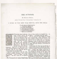 n.p. n.d. but Garden City New York 1914. 50 copies printed. Broadside 27.2 cm in green cloth slipcase with gilt spine-title and limp cloth chemise. 1 leaf. Richards A273. Kipling's powerful poem "The Outlaws" was his response to the German invasion of Belgium and the many reported atrocities. Kipling had long warned of the German threat and the poem makes clear his belief that Germany had been planning the war cold-bloodedly and hypocritically for many years. Very minor creasing Very Good in slightly rubbed slipcase. n.p., n.d., but Garden City, New York, 1914 hardcover