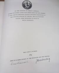 The Limited Editions Club at the Officina Bodoni Verona 1952. Hardcover. Near Fine. Bruno Bramanti. 31 x 22 cm. Quarto. xvi 155pp. Bound into 1/4 green cloth and patterned paper over boards housed in velvet lined slipcase. Limited to 1500 copies signed by the engraver Bruno Bramanti as well as the printer Giovanni Mardersteig of which this is copy 684. Spine is sun toned. The Limited Editions Club at the Officina Bodoni Verona hardcover