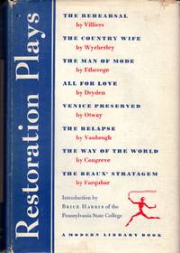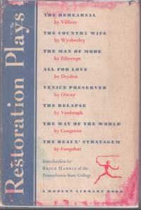 Modern Library 1953. Very Good. Villiers George. Restoration Plays. Wycherley William; Etherege George; Dryden John; Otway Thomas; Vanbrugh John; Congreve William; Farquhar George. Ny: Modern Library 1953. 674pp. 12mo. Paperback. Book condition: Very good with rubbing and bumping. Previous owner's name on first page. Modern Library paperback
