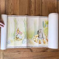 London: Warne. London: Frederick Warne & Co. Ltd. 1950's. Colour-printed paper frieze in three sections complete depicting a variety of characters from the stories including Peter Rabbit Jemima Puddleduck Mrs. Tiggywinkle Jeremy Fisher Benjamin Bunny Tom Kitten etc. Imprint to lower margin with copyright date 1952 some light spotting small amount of wear and creasing each 245 x 1015 mm making a whole of 3045 mm. An attractive piece of Beatrix Potter ephemera probably produced to decorate a chid's bedroom and intended to be discarded after use; such survivals are usually in poor condition. This is a VG rolled example. Would look great framed. Photographs available upon request. Warne