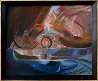 San Francisco: 1971. 14 x 18 inches. Oil on board. Framed. Signed lower right. Titled signed and dated on paper the verso. A California painter and poet affiliated with San Francisco's North Beach and the San Francisco Beat Movement. His small paintings were in an exuberant figurative or abstract style. He was an instructor at the San Francisco Art Institute and at the San Francisco Creative Art Center which he co-founded. Often collaborating with Beat poet Ruth Weiss he illustrated her book of poetry Gallery of Women and was immortalized in one of her poems.From the collection of the late San Francisco artist Vesta Kirby 1936-2016 who was a designer at SOM and the studio and restoration assistant and to Gordon Onslow Ford 1981-1992. San Francisco: 1971 unknown
