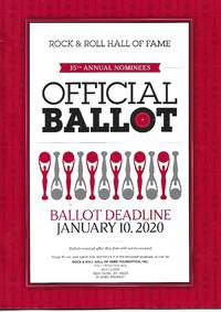New York: Rock and Roll Hall of Fame Foundation 2020. Book. Fine. Soft cover. 1st Edition. 10h x 7w. A real nice clean 16 page ballot book. The ballot was turned in so back cover is only half there. Has black and white photos of 20 nominees with their selected discography and a bio of the people. some of those listed are Whitney Houston Doobie Brothers Pat Benatar the Notorious B.I.G. and others. Rock and Roll Hall of Fame Foundation Paperback